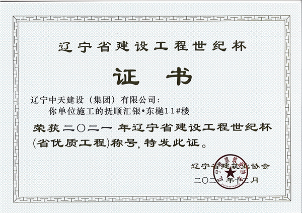 企業(yè)先后榮獲“全國優(yōu)秀施工企業(yè)”、 “中國AAA級信用企業(yè)”、“全國保障性安居工程建設(shè)勞動競賽先進單位”、“遼寧省最受尊敬企業(yè)”、“遼寧省優(yōu)秀建筑業(yè)企業(yè)”、“遼寧省工程建設(shè)質(zhì)量管理優(yōu)秀企業(yè)”、 “遼寧省守合同、重信用企業(yè)”、遼寧省“AAA級信用企業(yè)”、 “撫順市安全生產(chǎn)先進單位、紅旗單位”、“撫順市安康杯競賽先進集體”等多項殊榮。