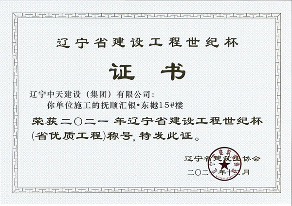 遼寧中天建設(shè)集團領(lǐng)導(dǎo)班子認(rèn)真貫徹落實科學(xué)發(fā)展觀,堅持以人為本,積極培育“開拓進取,求新向上,求真務(wù)實,團結(jié)奉獻(xiàn)”的企業(yè)精神和“干一項工程交一方朋友,占一方市場,樹一座豐碑”的經(jīng)營理念。經(jīng)過遼寧中天建設(shè)者的辛勤耕耘,許多建筑精品工程象一座座豐碑聳立在撫順大地上,令人矚目。撫順市保障性住房建設(shè)工程榮獲全國優(yōu)質(zhì)工程金獎,撫順移動通訊綜合樓、撫順市電信綜合樓、撫順市三寶屯污水處理廠擴建及中水回用工程等多項工程獲得“遼寧省世紀(jì)杯工程”、“遼寧市政金杯”工程等殊榮。公司還多次榮獲“省建筑業(yè)質(zhì)量管理先進施工企業(yè)”稱號。